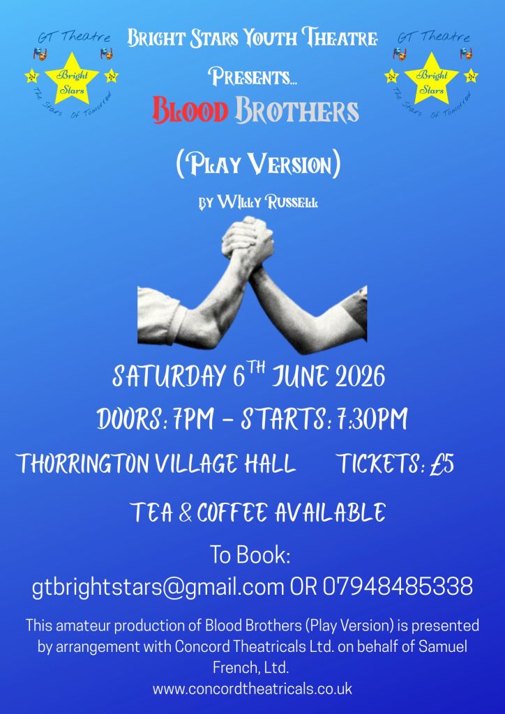 Blood Brothers – The Play Version Saturday 6th June 2026 – Thorrington Village Hall